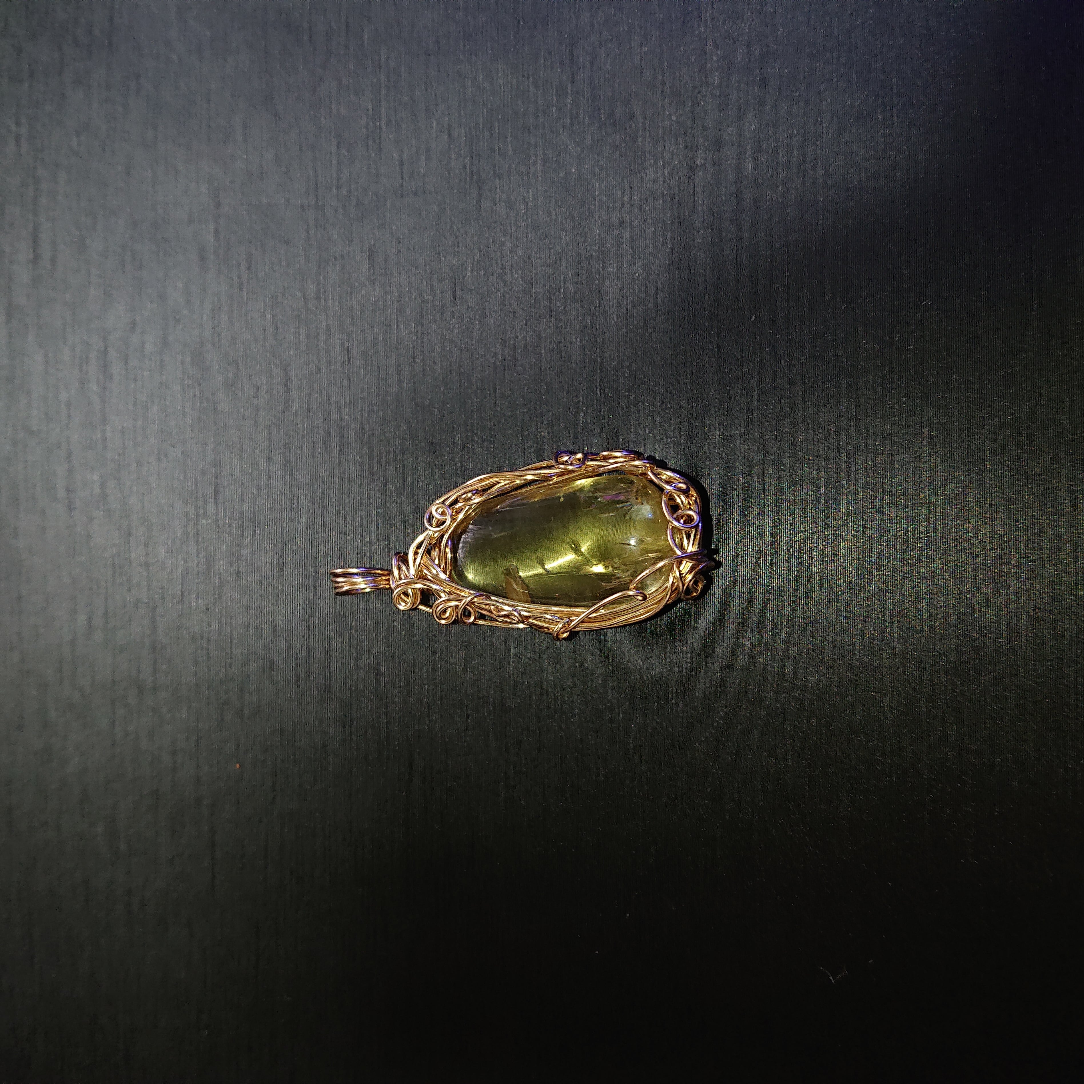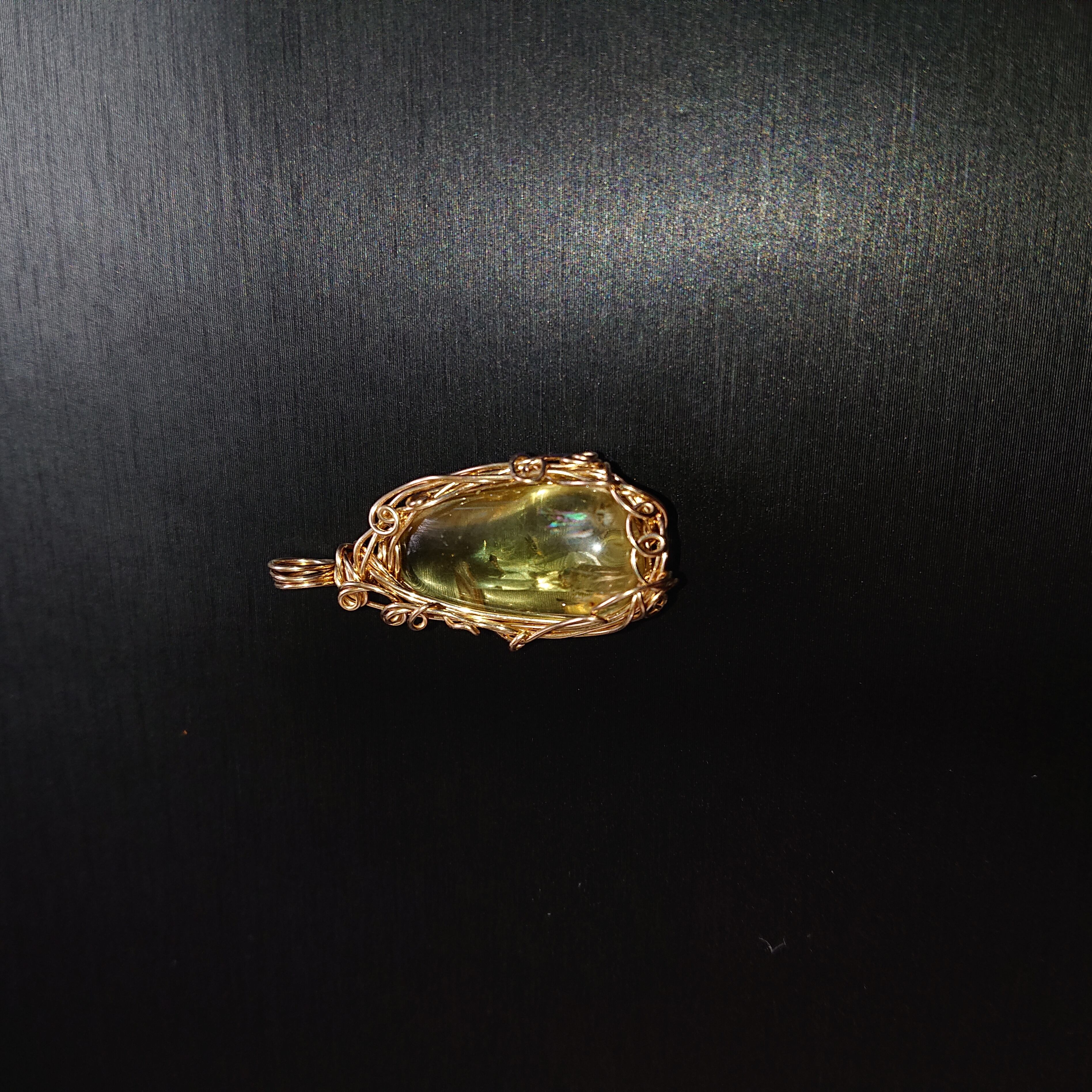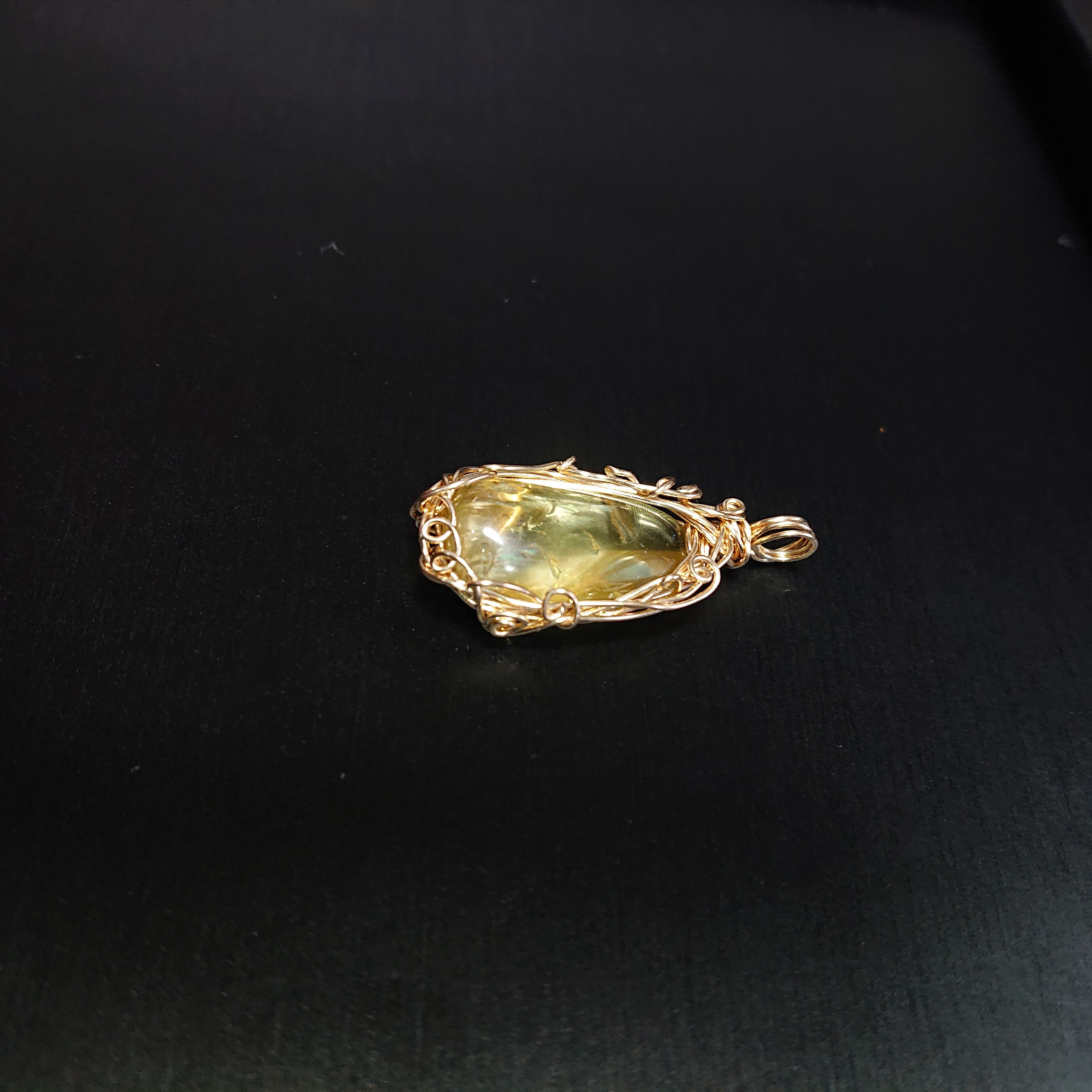 インクルージョン(内包物)に虹色の輝きが見える水晶のペンダントトップです。