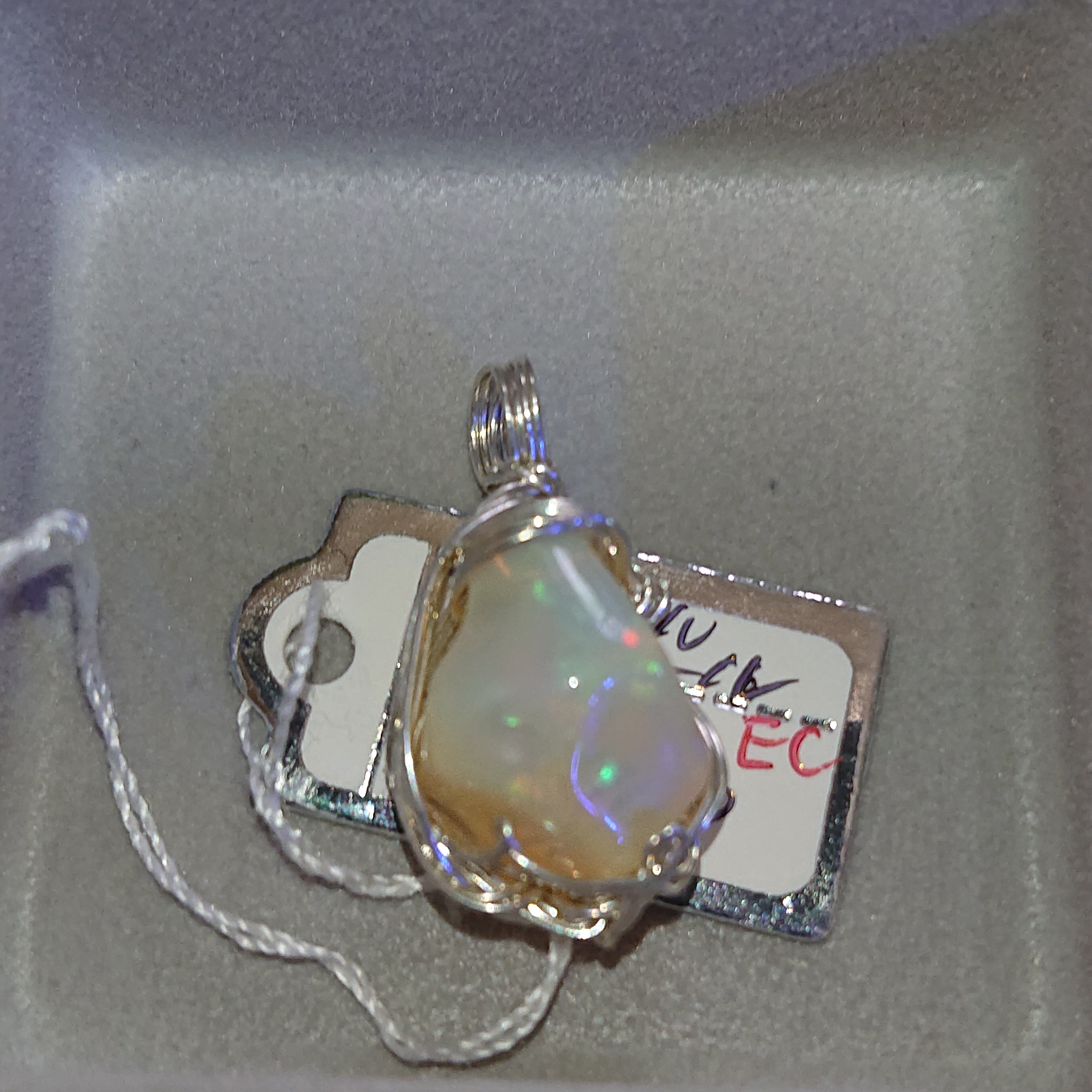 オレンジみのあるオパールです。遊色はしっかりあります。丸みのあるフォルムですが裏側が面白いかも。